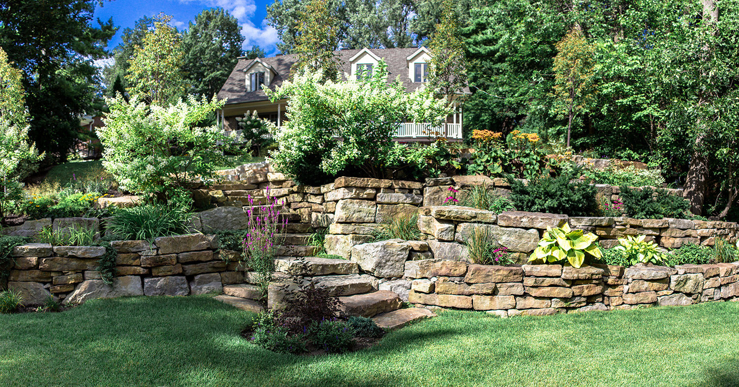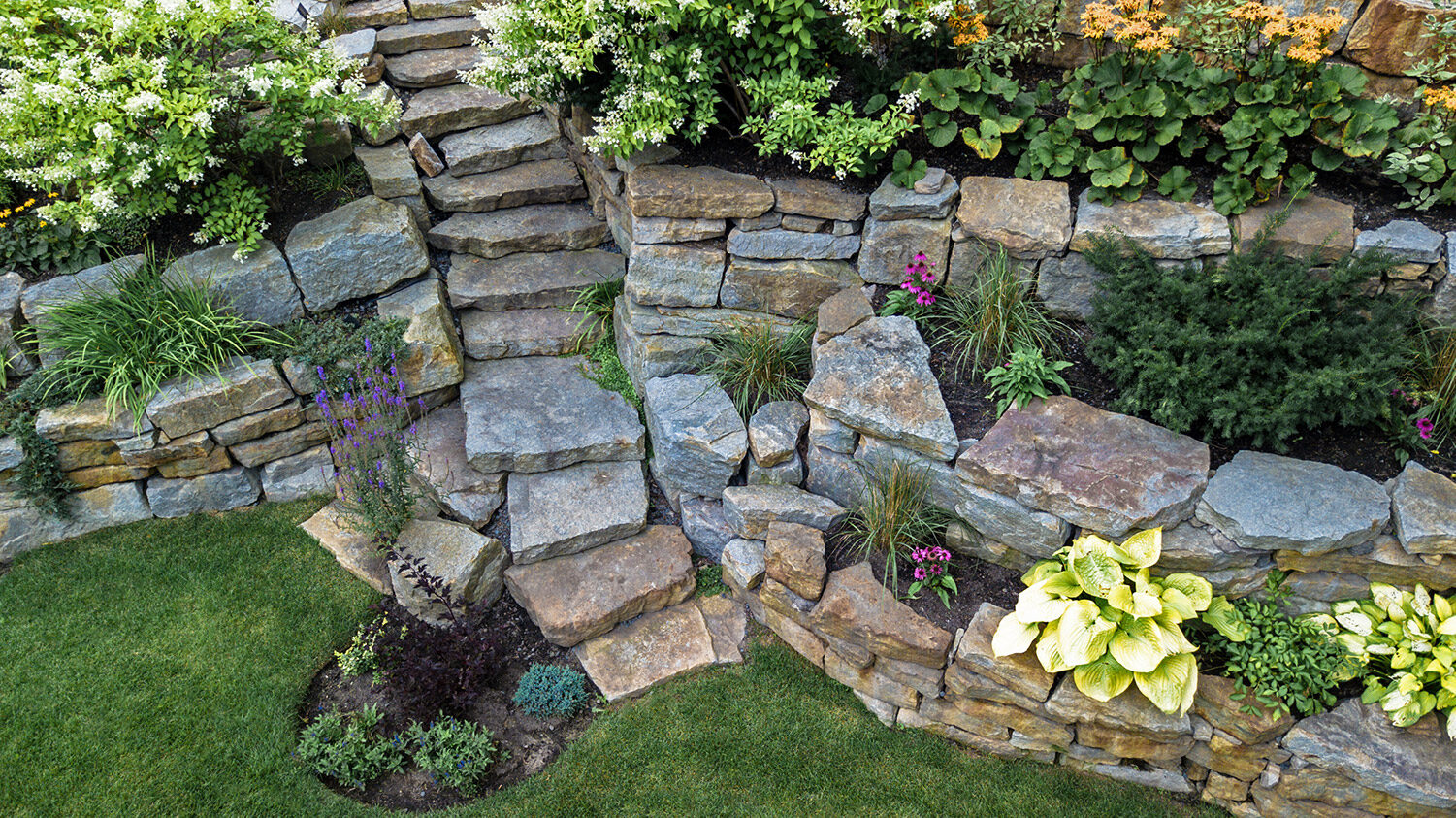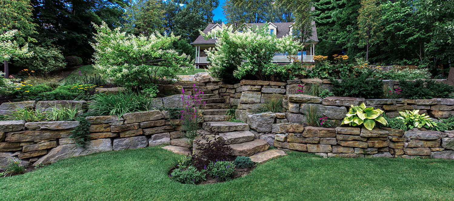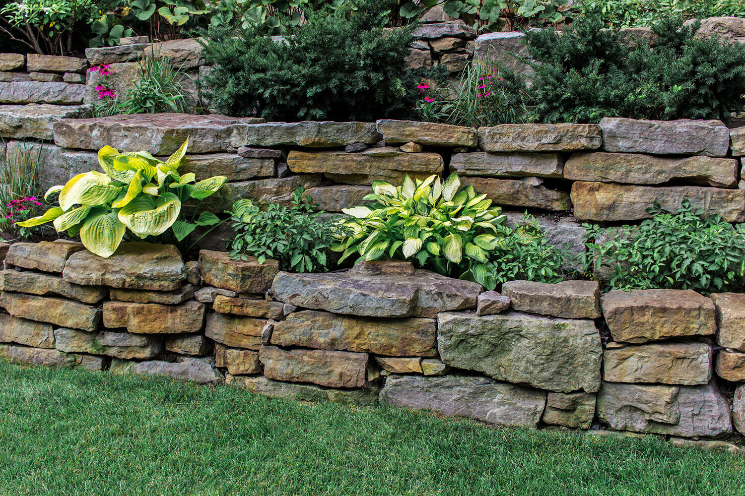 Une fois l’entrée de garage complétée, nous nous sommes tournés vers l’aménagement du paysage avoisinant. Avant l’installation de l’entrée de garage, la fosse septique a été déplacée en avant, forçant les murs en grosses roches d’être enlevés et la tuyauterie installée. Une opération qui a laissé la devanture en piteux état. En plus de reconstruire une partie des jardins en paliers, notre objectif était d’ajouter un peu d’intimité. Sept tilleuls ont été plantés le long de l’entrée de garage pour créer un écran naturel et aussi établir une délimitation visuelle de la bordure pour les conducteurs. Un érable mature de 8 mètres a été planté en avant pour cacher un poteau des services publics. Une platebande a été réalisée sous les nouveaux tilleuls et garnie de vivaces et d’herbes pour créer un jardin naturel et attrayant durant toute la saison estivale.