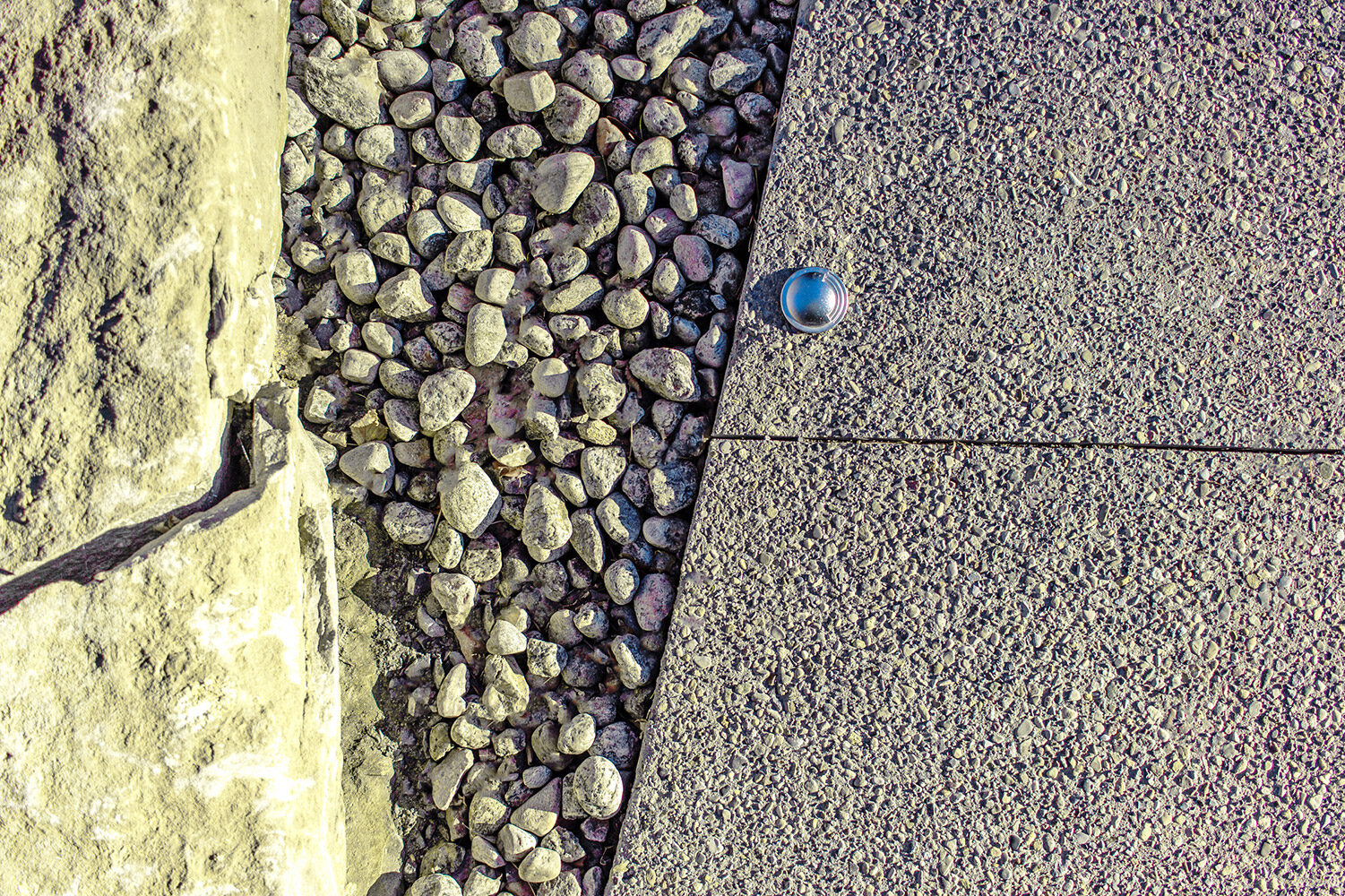 Plus de 250 verges cubes de terre ont été enlevées du site et remplacées par des granulats pour le drainage et la stabilisation de la base. Des murs de soutènement ont été érigés avec des rochers et du béton armé pour permettre de mettre à niveau autant que possible le stationnement élargi en haut de la côte. Toute la base a été isolée et préparée pour le béton à granulats exposés. La combinaison de la taille et la pente de l’entrée a demandé de fractionner la mise en place du béton en deux coulées d’environ 185 mètres carrés chacune.